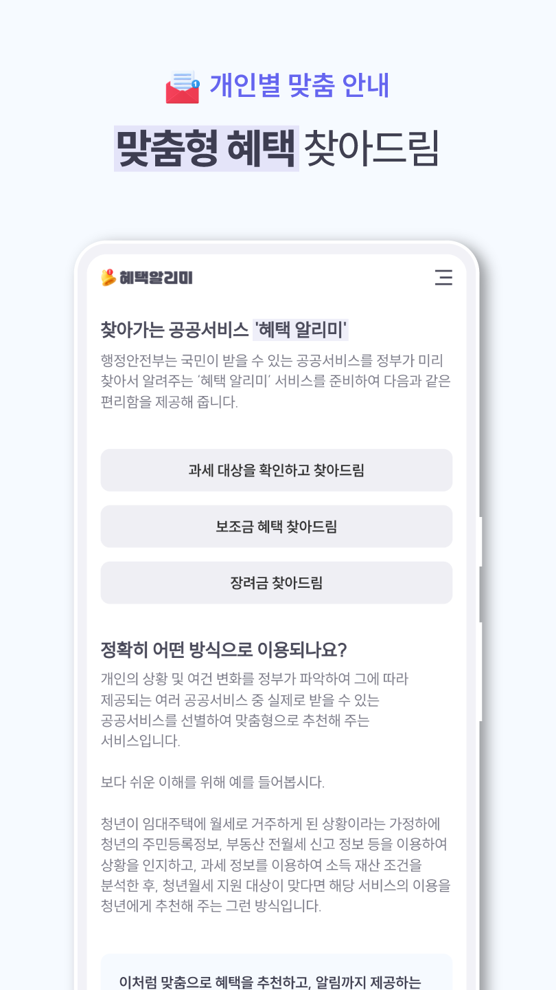 정부지원금, 복지혜택, 지자체 지원사업 등 맞춤형으로 다양한 혜택을 알려줍니다. - 지원금 신청이 복잡하지 않나요?